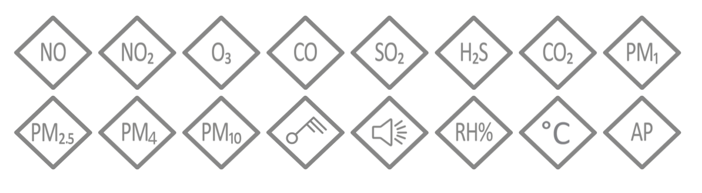 – Gases NO, NO2, O3, CO, SO2 and H2S using the latest generation of electrochemical sensors